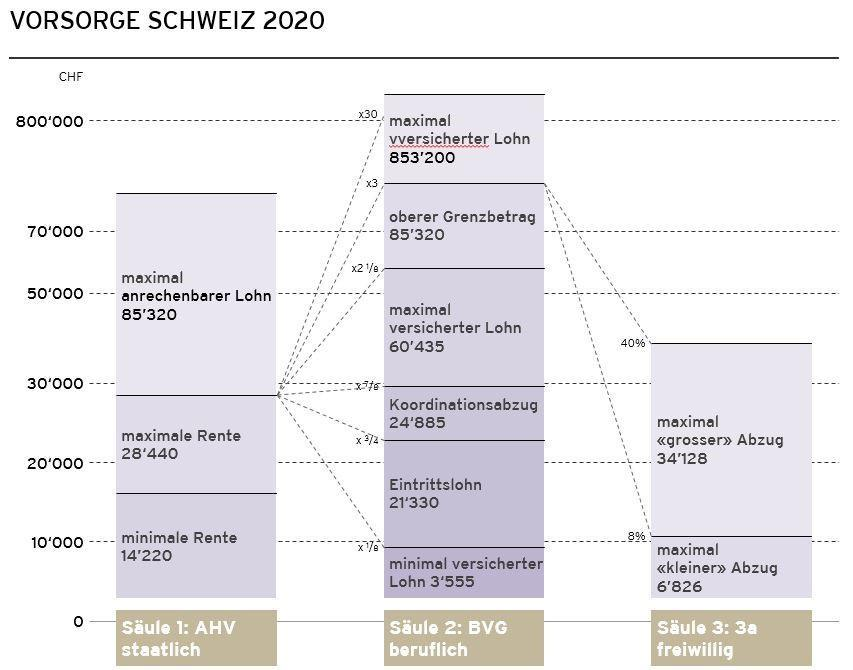 You can find details on the contributions of the 1st + 2nd pillars in our Social Insurance Factsheet 2020 .