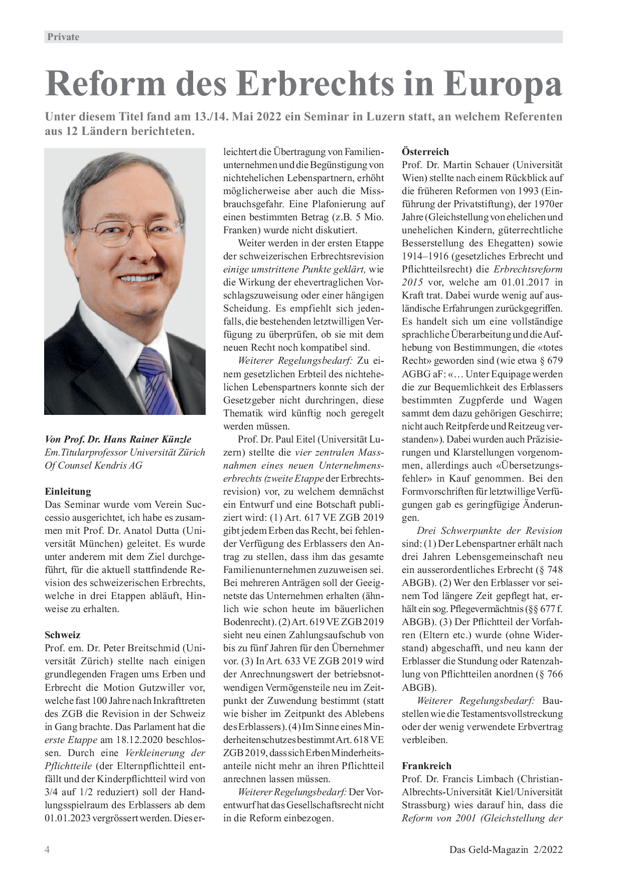 Bericht über das Seminar vom 13./14. Mai 2022 in Luzern mit Referenten aus 12 Ländern