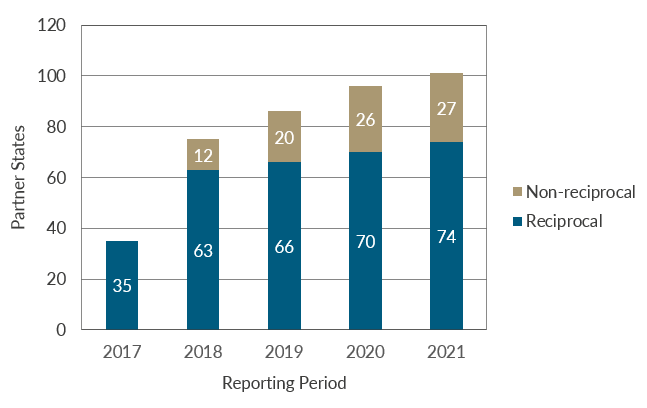 The chart below illustrates the development of the number of countries with which the FTA has exchanged information over the last five years.