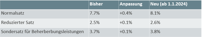 Erhöhung Schweizer Mehrwertsteuer – Änderungen per 1. Januar 2024