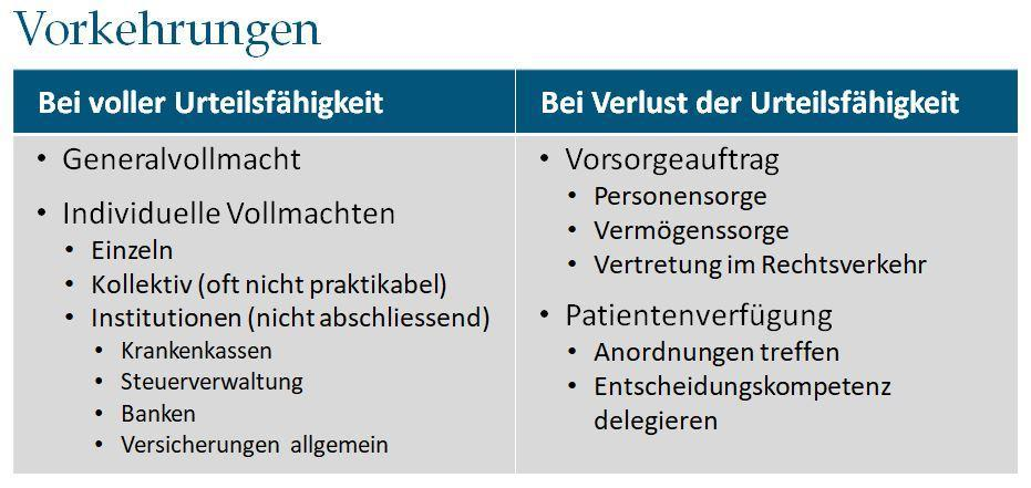 The following instruments offer the possibility of ensuring that the spouse, children, civil partner or a selected trusted person can act as representative. In particular, those instruments which are directly related to our health are briefly discussed.